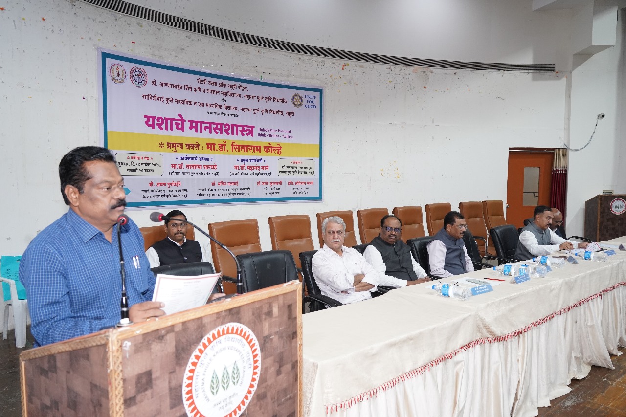 महात्मा फुले कृषी विद्यापीठ, राहुरी येथील डॉ. अण्णासाहेब शिंदे कृषी अभियांत्रिकी व तंत्रज्ञान महाविद्यालय, राहुरी येथील रोटरी क्लब व सावित्रीबाई फुले माध्यमिक व उच्च माध्यमिक विद्यालय यांच्या संयुक्त विद्यमाने यशाचे मानसशास्त्र या विषयावर कार्यक्रमाचे आयोजन करण्यात आले होते. या कार्यक्रमाच्या अध्यक्षस्थानावरुन डॉ. साताप्पा खरबडे बोलत होते.