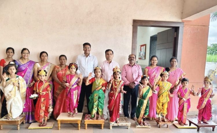 राहुरी प्रतिनिधी (सोमनाथ वाघ) : अष्टविनायक इंग्लिश मीडियम स्कूल अँड ज्युनिअर कॉलेज, तांदुळवाडी येथे नवरात्रोत्सव मोठ्या श्रद्धा व उत्साहात साजरा करण्यात आला. या निमित्ताने शाळेत विशेष सांस्कृतिक व धार्मिक कार्यक्रमांचे आयोजन करण्यात आले. या कार्यक्रमात विद्यार्थिनींनी देवीचे नऊ अवतार साकारून दुर्गा, लक्ष्मी, सरस्वती यांसह नवदुर्गांचे रूप उभे केले. या देखाव्याने संपूर्ण वातावरण भक्तिमय झाले आणि उपस्थितांच्या मनाला भावले. यानंतर पारंपरिक पद्धतीने कन्या पूजन सोहळा पार पडला. कन्यांना आरती, फुले व प्रसाद अर्पण करून मातृशक्ती व स्त्रीशक्तीचा गौरव करण्यात आला.