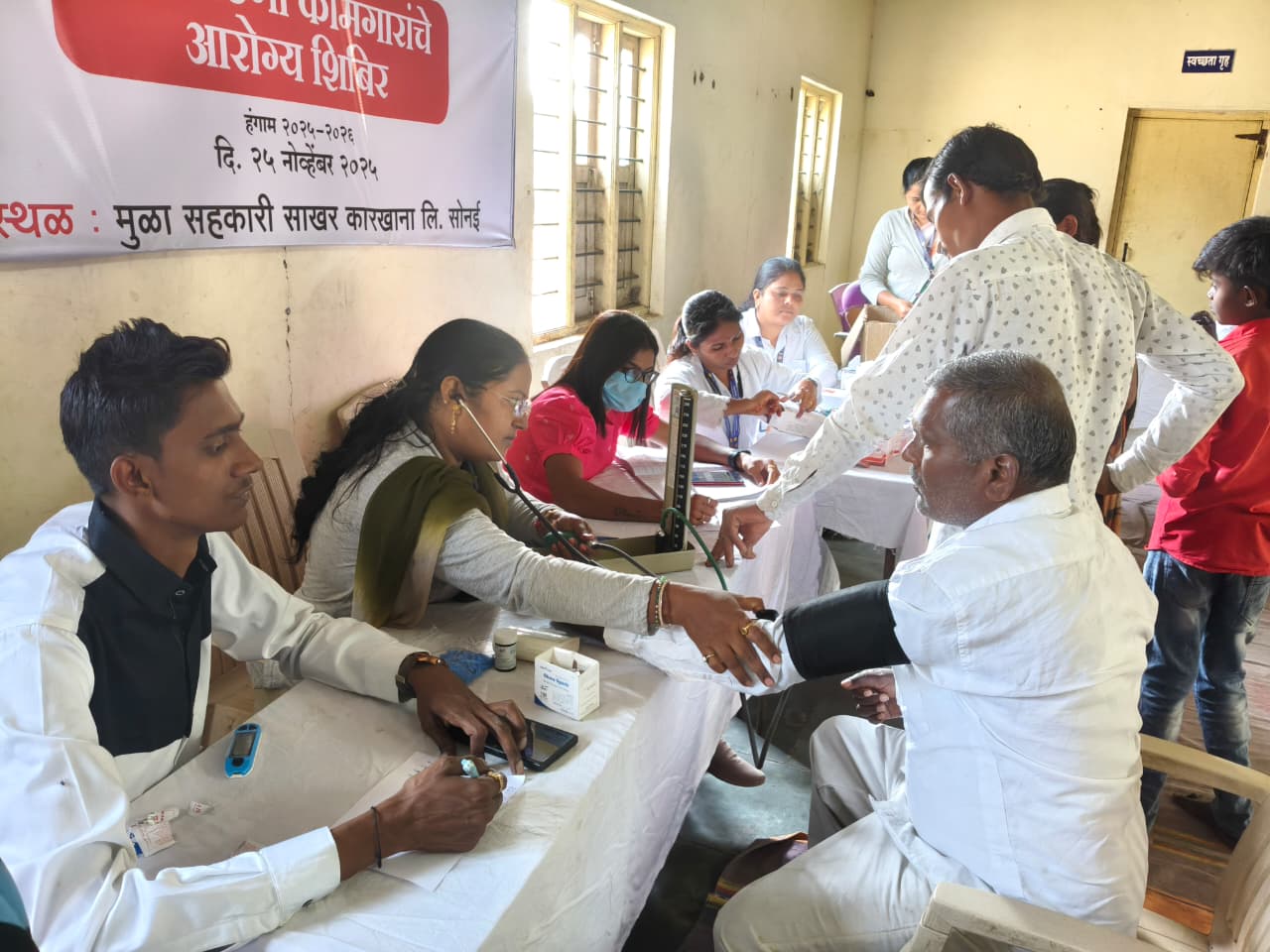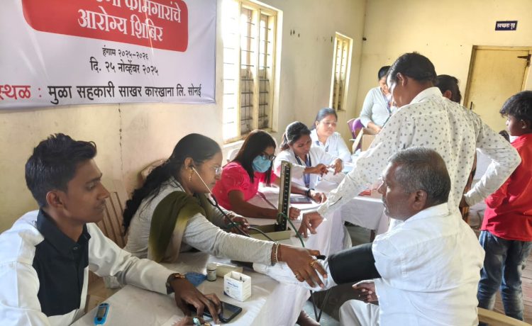 मुळा साखर कारखाना व सोनई प्राथमिक आरोग्य केंद्राचा सामाजिक उपक्रम, १०७ ऊसतोड मजुरांची मोफत आरोग्य तपासणी शिबिर संपन्न