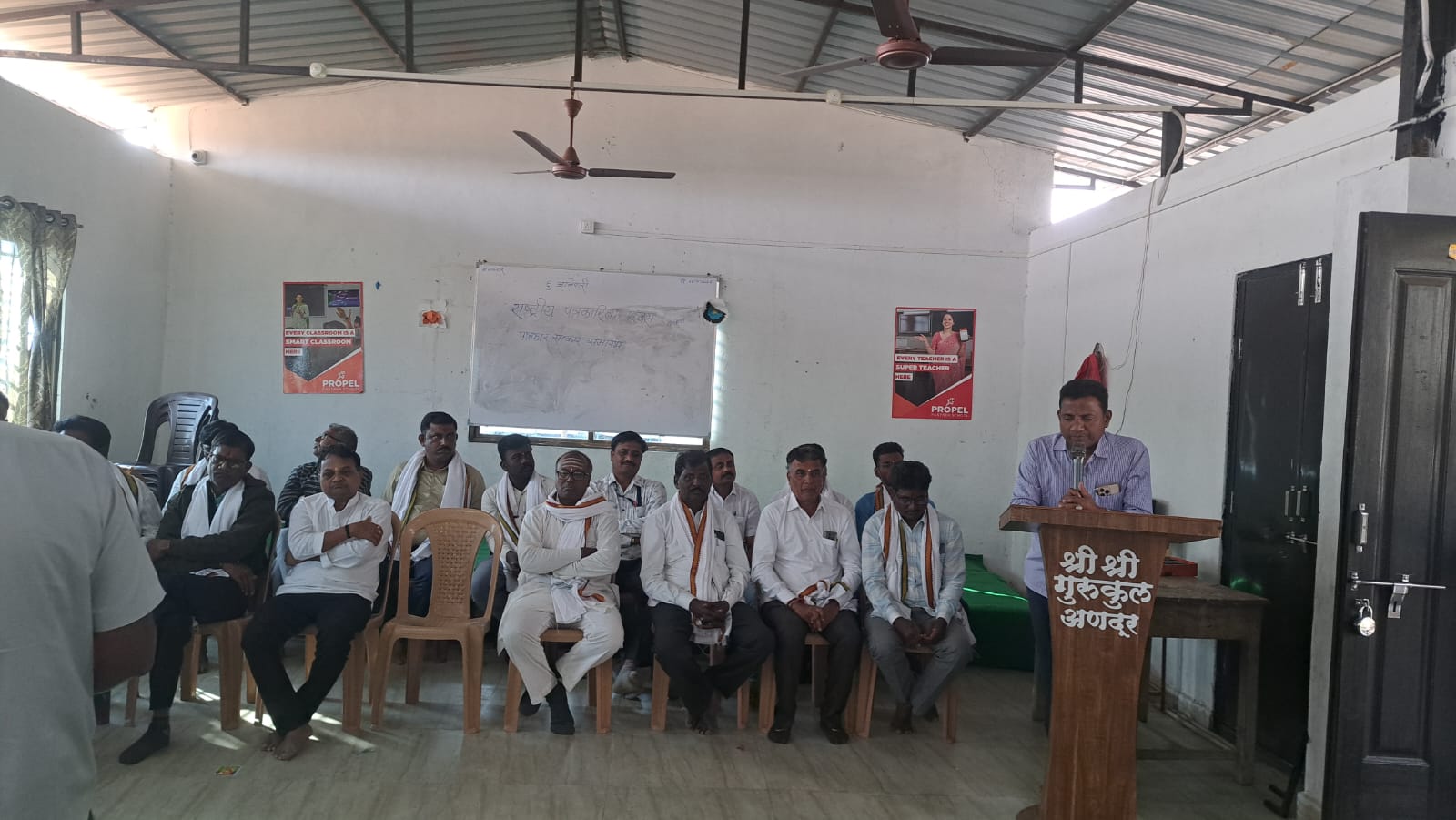 तुळजापूर चंद्रकांत / हगलगुंडे : मोबाईलच्या वाढत्या वापरामुळे वाचनाची सवय कमी होत चालली असली, तरी भूतकाळ, वर्तमानकाळ आणि भविष्यकाळ यांची सुस्पष्ट माहिती मिळवण्यासाठी दैनिक वाचन अत्यंत आवश्यक आहे, असे प्रतिपादन श्री श्री रविशंकर विद्या मंदिर व श्री श्री गुरुकुलचे संस्थापक अध्यक्ष तसेच ग्रामपंचायत सदस्य डॉ. जितेंद्र कानडे यांनी केले.दर्पण दिनाचे औचित्य साधून अणदूर येथील सर्व माध्यम प्रतिनिधींच्या सत्कार समारंभाचे आयोजन श्री श्री गुरुकुल शाळेत करण्यात आले होते. या कार्यक्रमाच्या अध्यक्षस्थानावरून ते बोलत होते.