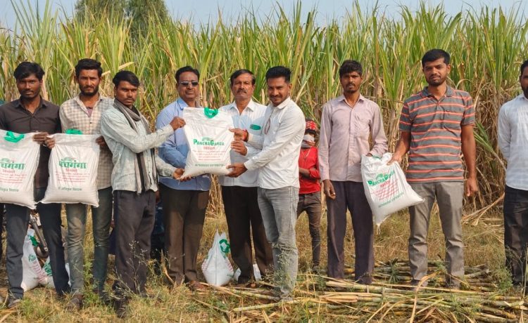मकर संक्रांतीनिमित्त पंचगंगा शुगर अँड पॉवरतर्फे पिंपरी अवघड येथे ऊस तोडणी कामगारांना साखर वाटप