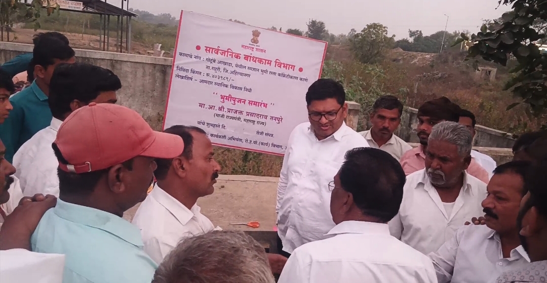 गोटुंबे आखाडा येथील स्मशानभूमी रस्त्याच्या कामात ‘गौडबंगाल’?, २०० मीटर उद्घाटन, पण काम अपूर्ण असल्याचा ग्रामस्थांचा आरोप