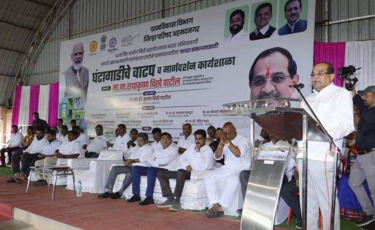 दिशा शक्ती न्युज : प्रमोद डफळ / अहमदनगर, दि.01 जुलै – देशाचा खऱ्या अर्थाने विकास साधावयाचा असेल तर ग्रामीण भागाचा विकास होणे आवश्यक आहे. गावे स्वच्छ व्हावीत, स्वयंपूर्ण व्हावीत या पंतप्रधान नरेंद्र मोदी यांच्या संकल्पनेला अधिक गती देण्यासाठी ग्रामीण भागाच्या स्वच्छतेसाठी जिल्ह्यातील ग्रामपंचायतींना विद्युत घंटागाडी वितरणाचा जिल्हा परिषदेचा हा उपक्रम राज्यातील पहिला अभिनव उपक्रम असल्याचे प्रतिपादन राज्याचे महसूल, पशुसंवर्धन, दुग्धव्यवसाय विकास मंत्री तथा जिल्ह्याचे पालकमंत्री राधाकृष्ण विखे-पाटील यांनी केले.
