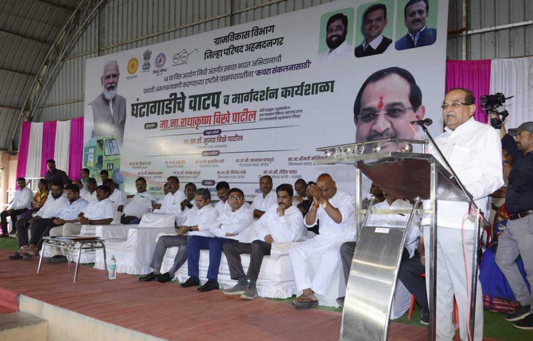 १४ व्या वित्त आयोगाच्या निधीअंतर्गत स्वचछ भारत अभियानाची अंमलबजावणी करण्यासाठी ग्रामपंचायतींना कचरा संकलनासाठी व वाहतुकीसाठी तीन चाकी विद्युत घंटागाड्यांचे पालकमंत्र्यांच्या हस्ते वितरण करण्यात आले. त्याप्रसंगी ते बोलत होते.यावेळी खासदार डॉ. सुजय विखे-पाटील, जिल्हा बँकेचे अध्यक्ष शिवाजीराव कर्डिले, जिल्हाधिकारी सिद्धाराम सालीमठ, जिल्हा परिषदेचे मुख्य कार्यकारी अधिकारी आशिष येरेकर, उपमुख्य कार्यकारी अधिकारी समर्थ शेवाळे, राहुल शेळके, सेवानिवृत्त उपमुख्य कार्यकारी अधिकारी सुरेश शिंदे आदी उपस्थित होते.