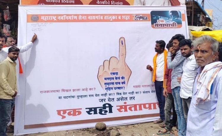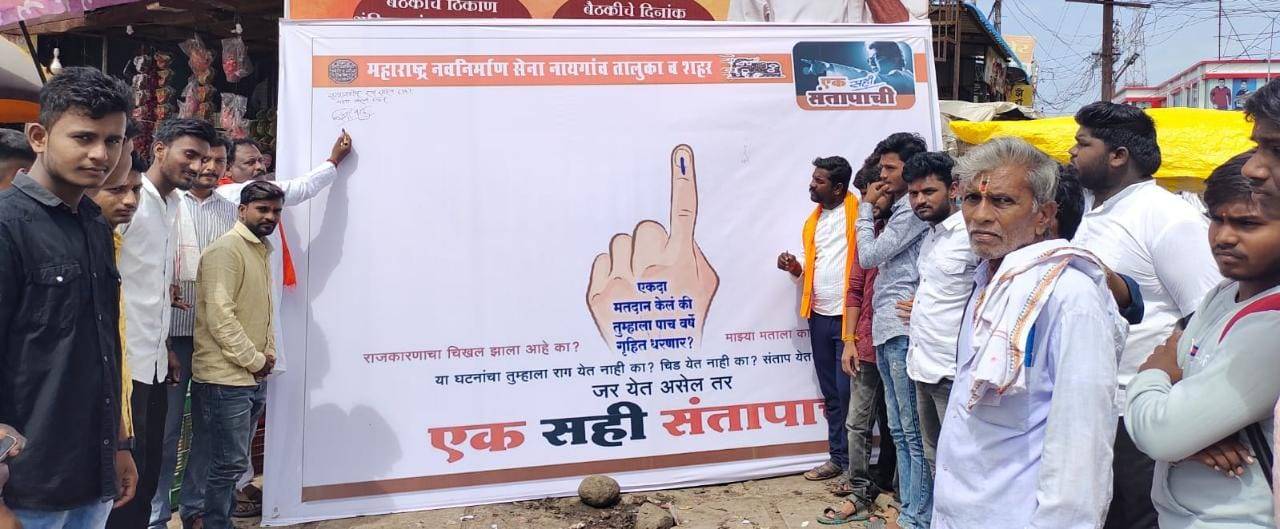 नांदेड प्रतिनिधी/धम्मदिप भद्रे कांडाळकर : मागील दिवसापासून महाराष्ट्राचे राजकारण ज्या खालच्या पद्धतीने चालले आहे त्या विरोधात जनतेच्या मनात प्रचंड रोष आहे हा रोष व्यक्त होण्यासाठी महाराष्ट्र नवनिर्माण सेनेचे राष्ट्रीय अध्यक्ष राज ठाकरे साहेब यांच्या आदेशानुसार व नायगाव तालुका अध्यक्ष राजेश दादा ताटेवाड व मनसे वाहतूक सेना तालुका अध्यक्ष शिवाजी जाधव यांच्या मार्गदर्शनाखाली दि 10/ 07/2023. रोजी नायगाव हेडगेवार चौक येथे या ठिकाणी महाराष्ट्र नवनिर्माण सेना नायगाव तालुक्याच्या वतीने एक सही संतापाची हा कार्यक्रम घेण्यात आला.