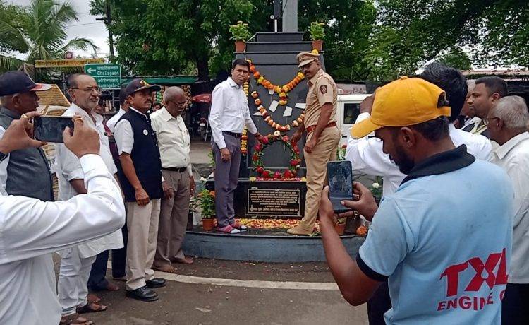 एसआर 24 न्यूज़ प्रतिनिधी / निवृत्ती शिंदे :नादगांव (नाशिक) : भारत देशाच्या इतिहासात महत्वाची ऐतिहासिक घटना घडली १९९९ मध्ये भारत आणि पाकिस्तान युद्ध सुरू झाले भारतीय लष्कराने आपले युद्ध कौशल्य दाखवत २६ जुलै १९९९ ला कारगिल युद्धावर विजय मिळवला परंतु युद्ध काळात अनेक भारतीय जवानांना भारत मातेच्या रक्षणासाठी लढताना वीरगती प्राप्त झाली. जे देशासाठी लढले ते अमर हुतात्मे झाले याप्रमाणे हुतात्म्य प्राप्त झालेल्या जवानांचे स्मरण करण्यासाठी व २६ जुलै कारगिल विजय दिनानिमित्त नांदगाव तालुक्यातील हुतात्मे चौकात २६ जुलै २०२३ रोजी माजी सैनिक कल्याण सेवाभावी संस्था, शिव संस्कार संस्था यांचे कडून कार्यक्रम संयोजन करण्यात आले होते. यावेळी नांदगाव तालुका तहसीलदार डॉ. सिद्धार्थ मोरे, पोलीस निरीक्षक प्रीतम चौधरी , माजी सैनिक यांचे हस्ते हुतात्मा स्मारकास पुष्पचक्र अर्पण करत विनम्र अभिवादन करण्यात आले. दरम्यान नानासाहेब काकळीज यांनी युद्धप्रसंगाच्या आठवणींना उजाळा दिला. मेजर जगन्नाथ साळुंखे यांनी शहीद जवानांना अभिवादन करत हुतात्मा स्मारक निर्मिती बाबत सांगितले.शिव संस्कार संस्थेचे सुमित गुप्ता यांनी सूत्रसंचालन केले. यावेळी