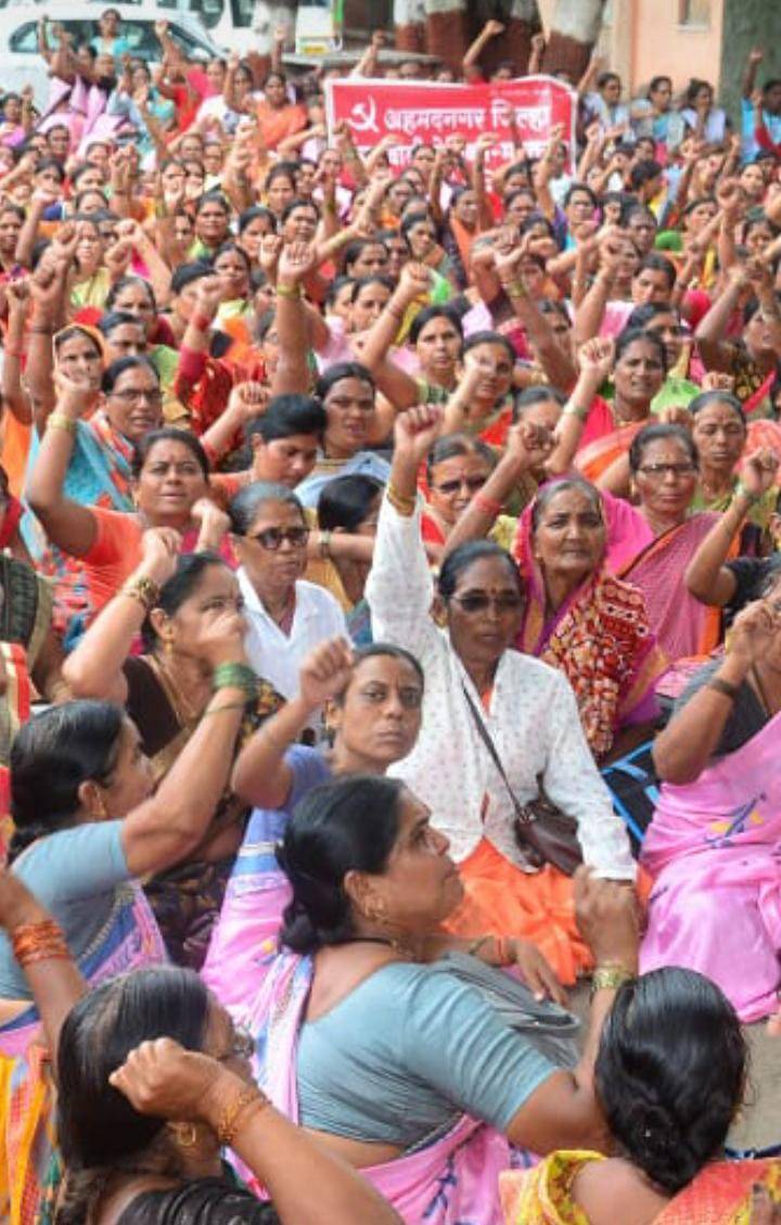 राहुरी तालुका प्रतिनिधी / ज्ञानेश्वर सुरशे : अंगणवाडी कर्मचाऱ्यांच्या विविध प्रलंबित मागण्यांची तड लागावी, यासाठी नगर जिल्हा अंगणवाडी सेविका मदतनीस कर्मचारी युनियनतर्फे नुकतेच जिल्हा परिषदेसमोर धरणे आंदोलन करण्यात आले. या आंदोलनात अंगणवाडी सेविकांच्या घोषणांनी जिल्हा परिषदेचा परिसर दणाणून निघाला.या आंदोलनात संघटनेच्या अध्यक्षा मदिना शेख, सरचिटणीस राजेंद्र बावके, जीवन सुरुडे, शोभा लांडगे, मंदा कसारा, माया जाजू आदी उपस्थित हाेते.