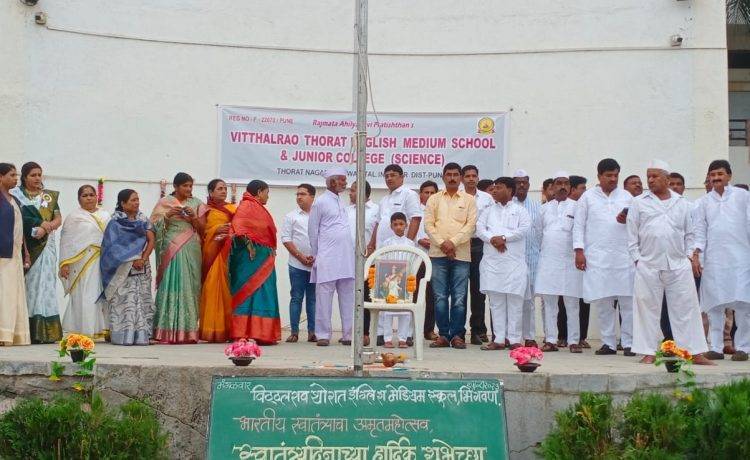 इंदापूर प्रतिनिधी / प्रवीण वाघमोडे : आज दिनांक 15 ऑगस्ट 2023 रोजी 77 वा स्वतंत्र दिन विठ्ठलराव थोरात इंग्लिश मीडियम स्कूल आणि ज्युनिअर कॉलेज व औद्योगिक प्रशिक्षण संस्था भिगवन येथे उत्साहात साजरा करण्यात आला यावेळी झेंडावंदनसाठी गावातील सर्व प्रतिष्ठित नागरिक उपस्थित होते यावेळी झेंडावंदन व सरस्वतीचे पूजन संस्थेचे उपाध्यक्ष माननीय श्री मारुतराव थोरात यांच्या हस्ते करण्यात आले यानंतर विद्यार्थ्यांनी संचलन करून उपस्थित नागरिक व पाहुणे यांचे मन जिंकली यानंतर दहावी, बारावी व इतर क्रीडा स्पर्धेत तालुका, जिल्हा, राज्य स्तरावर तसेच काटमांडू याठिकाणी झालेल्या स्पर्धेत उत्कृष्ट कामगिरी करून यश संपादन केलेल्या विद्यार्थ्यांच्या सन्मानपत्र ट्रॉफी देऊन सन्मान करण्यात आला.
