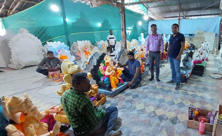 आकर्षक गणेशमूर्ती व रंगकामास वेग ; ६ इंचापासून १४ फुटापर्यंत पसंतीच्या मूर्ती उपलब्