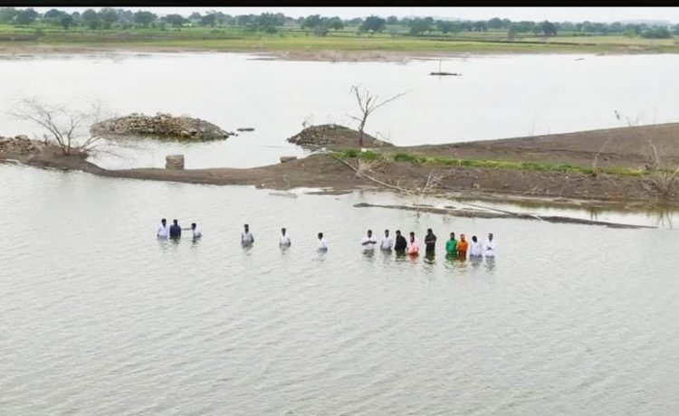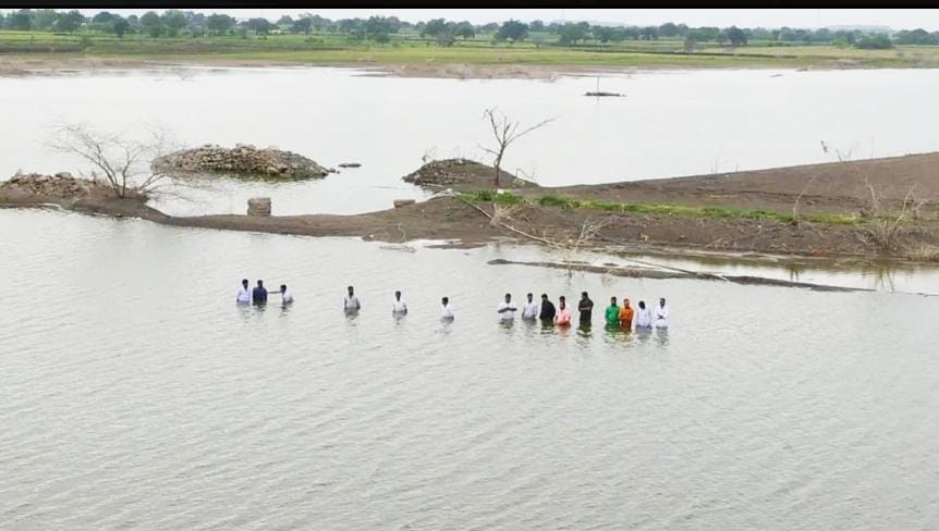 वैजापुरात तरुणांचे जलसमाधी आंदोलन ; तीन दिवसांत कार्यवाही करण्याचे अधिकाऱ्यांचे आश्वासन