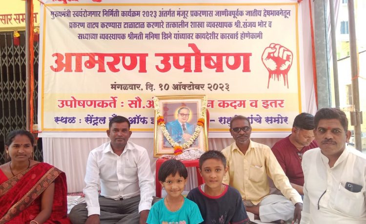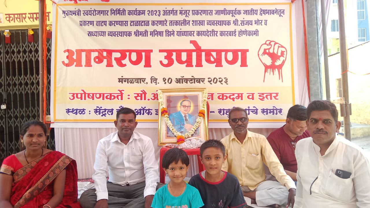 परंतू मला शासकीय योजना मिळवण्यास अडथळा आणणाऱ्या, जातीयवादी शाखा व्यवस्थापक श्री. संजय भोर (तत्का.) व सध्याच्या व्यवस्थापक श्रीमती मनिषा झिने यांच्या विरोधात मागासवर्गीय महिलेला जाणीवपूर्वक जातीय द्वेष भावनेतून त्रास दिल्याबद्दल गुन्हे दाखल होणेकामी व मला शासकीय योजनाचा लाभ तात्काळ मिळावा सर्व सहकारी महिला कार्यकर्त्या यांच्या समवेत मंगळवार दिनांक १०/१०/२०२३ पासून सेंट्रल बँक ऑफ इंडिया, शाखा राहुरी यांच्या दालनासमोर आमरण उपोषणास बसलो आहोत. त्यानंतर मात्र माझी व सर्वच उपोषणकर्त्यांची जबाबदारी तत्कालीन शाखा व्यवस्थापक श्री. संजय भोर व सध्याच्या व्यवस्थापक श्रीमती मनिषा झिने यांच्यावरच राहील, याची कृपया नोंद घ्यावी.