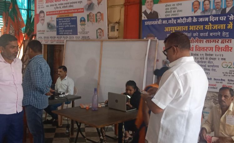 भारत कवितके / मुंबई कांदिवली : मुंबई उपनगर कांदिवली येथील भारतीय जनता पक्षाचे वार्ड क्रमांक 31 चे मा.नगरसेवक कमलेश यादव यांच्या कार्यालयाच्या बाजूला जनसंपर्क कार्यालय वेल्फेअर सेंटर,न्यू लिंक रोड, कांदिवली पश्चिम या ठिकाणी आधार कार्ड शिबीर, आणि आयुष्यमान भारत योजना कार्ड च्या शिबीराचे आयोजन भाजपचे उत्तर मुंबई चे खासदार गोपाळ शेट्टी, आमदार योगेश सागर यांच्या मार्गदर्शनाखाली पंतप्रधान नरेंद्र मोदी यांच्या जन्म सप्ताह निमित्त चालू असलेले आधार कार्ड नोंदणी व आयुष्यमान कार्ड शिबीर रोज सकाळी 9 ते दुपारी 4 यावेळेत दररोज चालू करण्यात आले आहे.