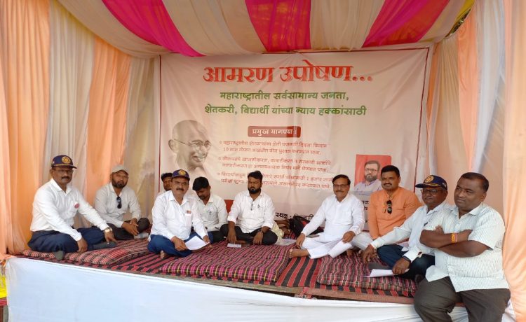 शेतकऱ्याच्या मुलाचे शेतकऱ्यांच्या व विद्यार्थ्यांच्या विविध मागण्यांसाठी जिल्हाधिकारी कार्यालयासमोर आमरण उपोषण
