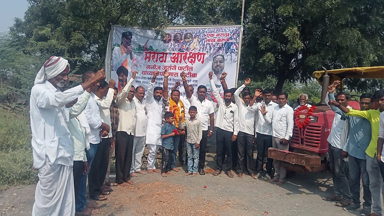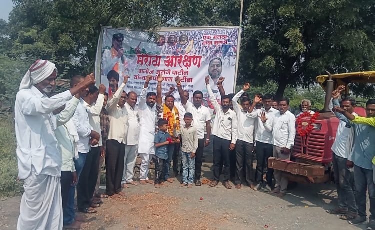 जिल्हा प्रतीनिधी/मिलींद बच्छाव : दिनांक 18 / 10/ 2022 रोजी मौजे कोकलेगाव तालुका नायगाव जिल्हा नांदेड येथील तानाजी पाटील मिरकुटे यांनी सकल मराठा समाज बाधवांचे नेते मनोज जरांगे पाटील यांचे आदर्श घेते तानाजी पाटील मुरकुटे यांच्या संकल्पनेतून एकमेव उत्पन्नाचे साधन असलेले ट्रॅकर या सहाय्याने संमस्त कुनबी समाज शेतकरी बांधवांचे रबीची पेरणी 1500 च्या ऐवजी 600 प्रती एकर पेरणी करण्याचे हे पवित्र काम तानाजी पा मुरकुटे यांनी घेतलेली आहे