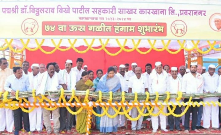 विशेष प्रतिनिधी / इनायत अत्तार : पद्मश्री डॉ. विठ्ठलराव विखे पाटील सहकारी साखर कारखान्याच्या गळीत हंगामाचा शुभारंभ शालिनीताई विखे पाटील व खा. डॉ. सुजय विखे पाटील यांच्याहस्ते झाला. यावेळी ते बोलत होते. अध्यक्षस्थानी जिल्हा बँकेचे संचालक अण्णासाहेब म्हस्के पाटील होते. यावेळी प्रवरा बँकेचे चेअरमन डॉ. भास्करराव खर्डे, ट्रक्स वाहतूक संस्थेचे चेअरमन नंदकिशोर राठी, भाजपचे जिल्हाध्यक्ष विठ्ठलराव लंघे, फळे भाजीपाला संस्थेच्या चेअरमन गीताताई थेटे, बँकेचे व्हा. चेअरमन मच्छिंद्र थेटे, शांतिनाथ आहेर, ट्रक्स वाहतूक संस्थेचे व्हा.चेअरमन सुनील जाधव, बाजार समितीचे सभापती ज्ञानेश्वर गोंदकर, उपसभापती अण्णासाहेब कडू आदी मान्यवर उपस्थित होते.