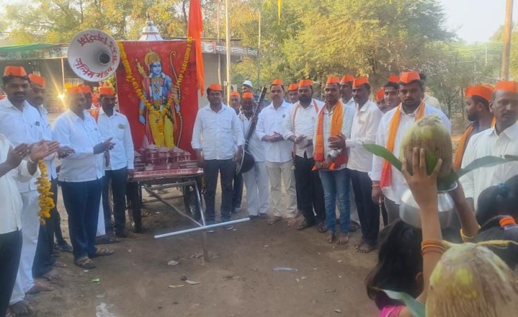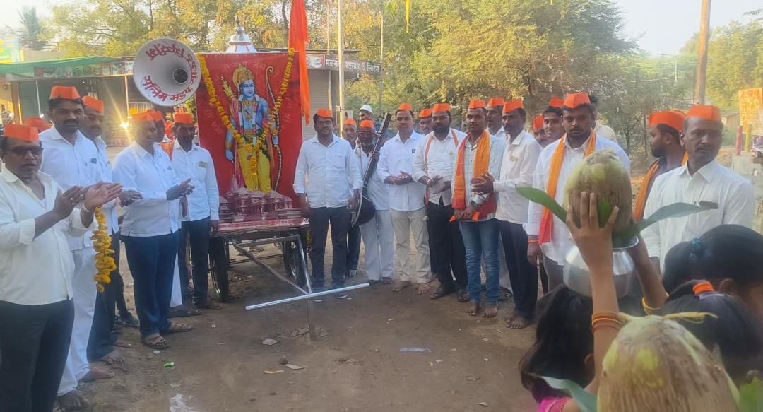 श्री.क्षेत्र अयोध्या श्रीराम जन्मभुमी येथुन आलेल्या अक्षदा कलशाचे मांजरी ग्रामस्थांच्या वतीने जल्लोषात स्वागत