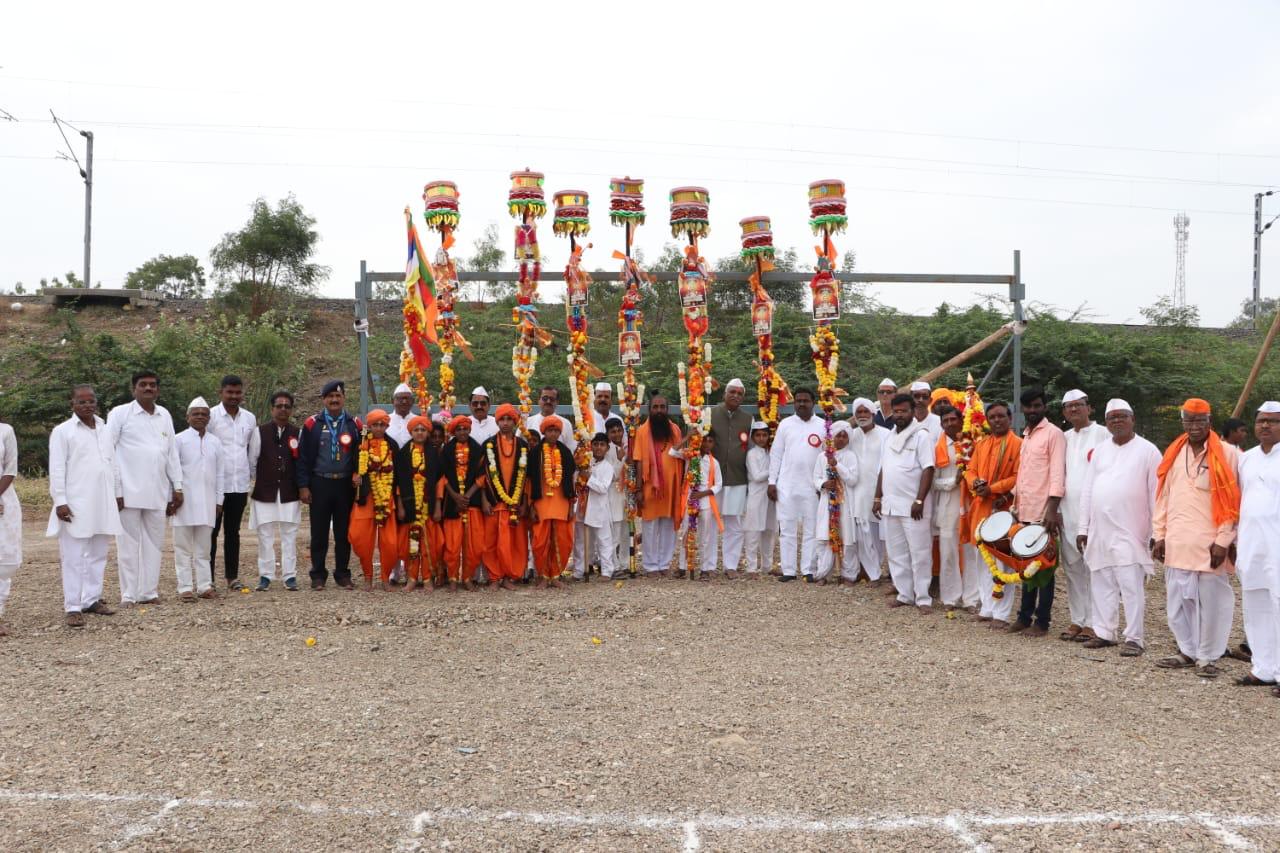 यावेळी मान्यवरांचे शाल व पुष्पहार देऊन सत्कार करण्यात आला. यानंतर नगरातून बाराबंदीतील मुलांच्या हातात श्री सिद्धेश्वर यात्रेप्रमाणे सात प्रतिकात्मक नंदी ध्वज, पालखी,कावड व भगवे झेंडे घेऊन विद्यार्थ्यांनी बोला बोला एकदा भक्त लिंग हर्र…बोला…हर्र… श्री सिद्धेश्वर महाराज की जय ‘ अशा घोषणा देत,व बँजो व ढोल ताशाच्या आवाजात श्री सिद्धेश्वर महाराजांच्या यात्रेचा जागर करत मिरवणूक काढण्यात आली.या मिरवणुकीत शेकडो बालचमू बाराबंदीच्या वेशभूषेत,तर मुली पारंपरिक वेशभूषेत दाग-दागिने घालून नटून-थटून सहभागी झाले होते.नंदी ध्वज व पालखीच्या स्वागतासाठी प्रशालेकडून व हत्तुरे नगर वासीयाकडून रांगोळीच्या पायघड्या काढण्यात आले होते. मिरवणुकी दरम्यान हत्तुरे परिवार व पालक भक्तगणाकडून नंदीध्वज व पालखीवर पुष्पवृष्टी करण्यात आली.या मिरवणुकीत ढोल पथक,टाळ पथक,लेझीम पथकातील मुलानी व कर्नाटकी बाहुल्यांनी नागरिकांचे लक्ष आकर्षित करून घेतले.