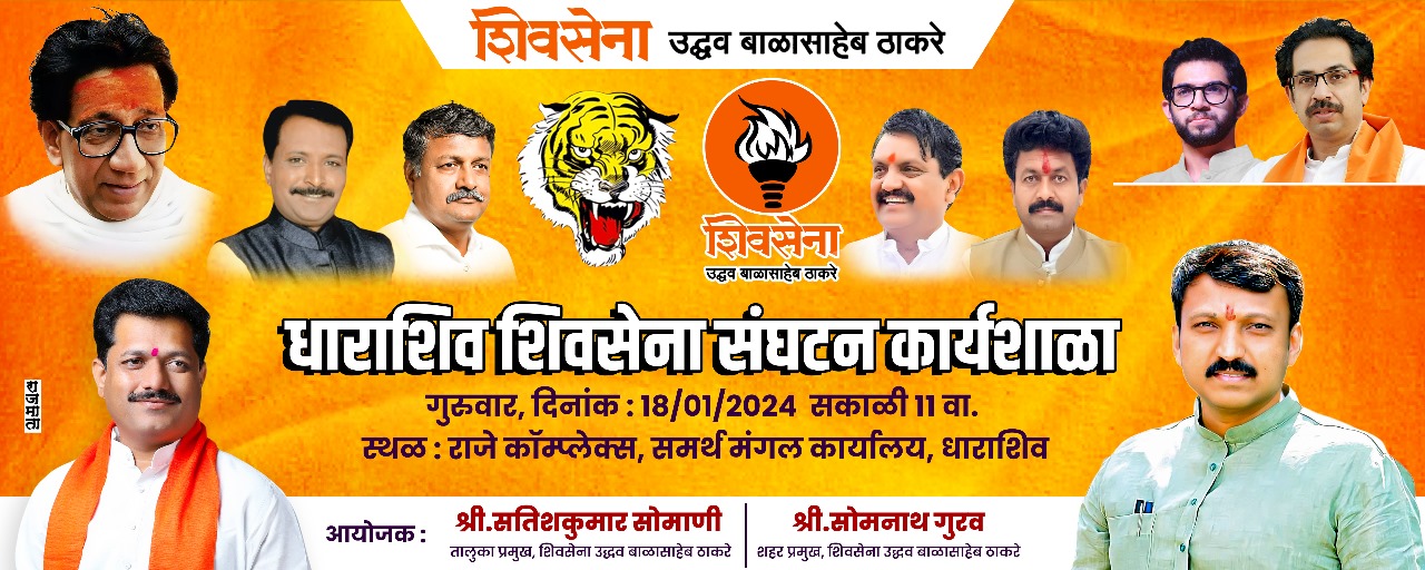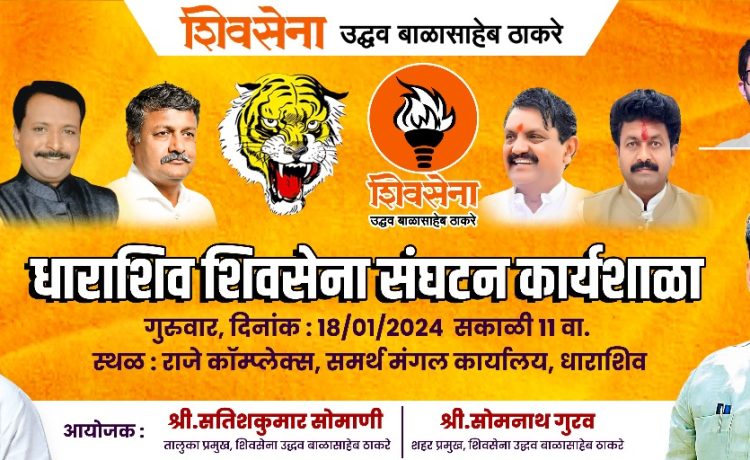 भविष्यात संघटन कसे करावे याची माहिती व्हावी म्हणुन शिवसेना ठाकरे गटाचे धाराशिव तालुकाप्रमुख सतीषकुमार सोमाणी व शहरप्रमुख सोमनाथ गुरव यांनी पक्षश्रेष्टीच्या आदेशाप्रमाने गुरुवार १८ जानेवारी रोजी सकाळी ११ वाजता राजे कॉम्प्लेक्स धाराशिव येथे संघटन कार्यशाळेचे आयोजन केले आहे .