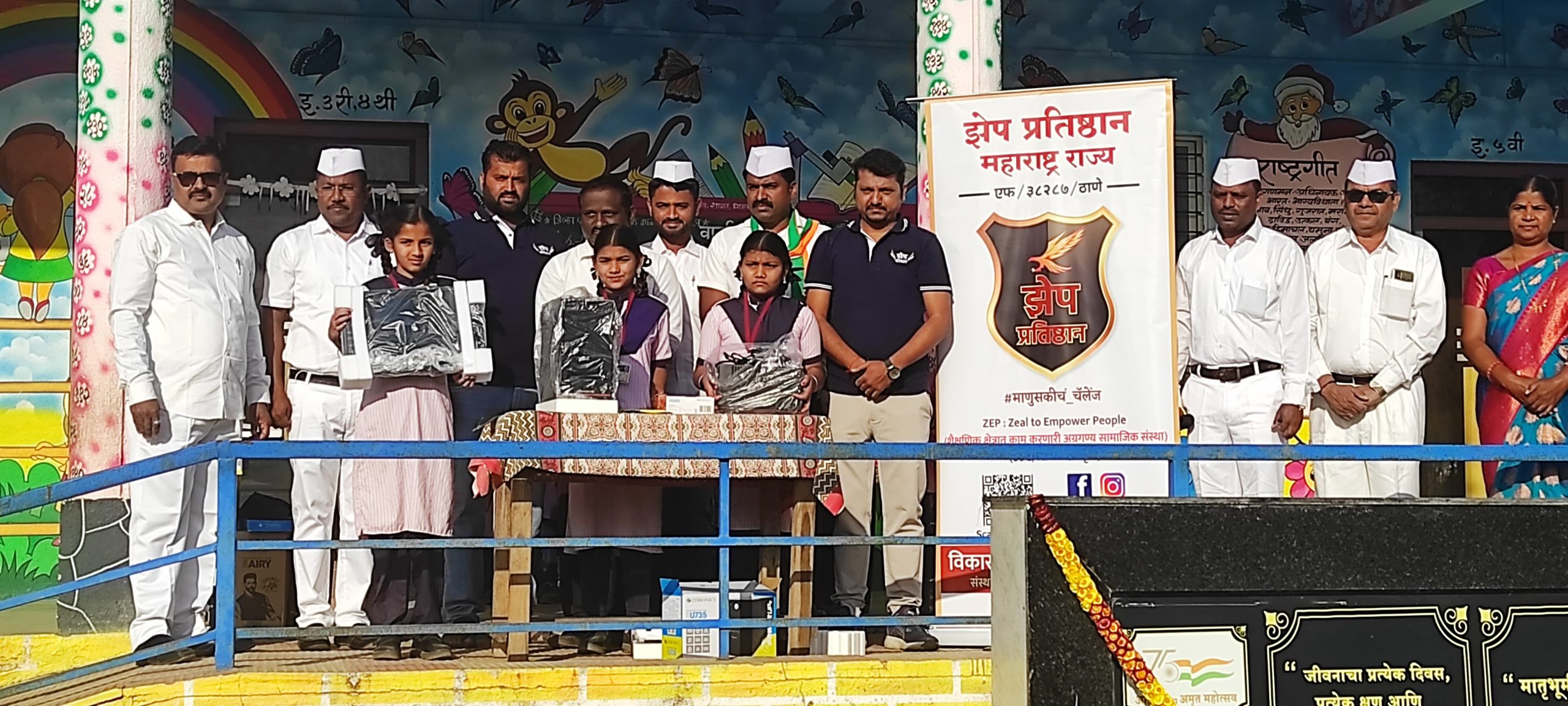 याप्रसंगी शालेय व्यवस्थापन समिती आणि गावातील विविध संस्थांच्या वतीने या दातृत्वाबद्दल झेप प्रतिष्ठानच्या प्रतिनिधींना सन्मानित करण्यात आले.याकरिता मदत करणाऱ्या सर्व दानशूर व्यक्तींचे मनापासून आभार.