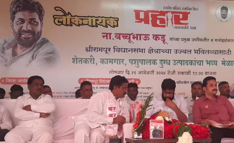 राहुरी प्रतिनिधी / युनूस शेख : – कांदा निर्यात त्वरित सुरू करून शेतकऱ्यांच्या दुधाला किमान 50 रुपये दर देऊन राज्य शासनाने जाहीर केलेल्या दुध दर अनुदानासाठी घातलेले निकष रद्द करुन दुध उत्पादक शेतकऱ्यांच्या खात्यात त्वरित अनुदान जमा करण्यात यावे, अशा मागण्यांचे लेखी निवेदन प्रहार शेतकरी मेळाव्यात माजी मंत्री आ.बच्चुभाऊ कडु यांना राहुरी तालुकाध्यक्ष सुरेशराव लांबे पाटील यांनी दिले.