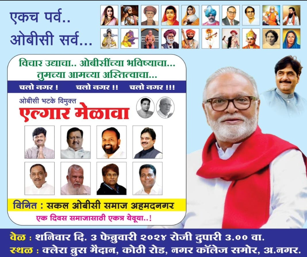 वसंत रांधवण / (विशेष प्रतिनिधी अहमदनगर) : मराठा आरक्षणाच्या आंदोलनानंतर ओबीसींचे आरक्षण बचावाच्या मागणीसाठी ओबीसी समाज संघटना एकवटून आणखी आक्रमक झाल्या आहेत. मराठा आंदोलनाच्या यशानंतरचा पहीलाच आरक्षण बचाव महाएल्गार मेळावा ३ फेब्रुवारीला नगरला होत आहे. त्यामध्ये लाखो लोकांना एकत्र आणून जोरदार शक्तिप्रदर्शनाची तयारी सुरू आहे. मेळाव्याला ओबीसींचे राष्ट्रीय नेते मंत्री छगन भुजबळ यांच्यासह अनेक नेते उपस्थित राहणार आहेत. तर दुसरीकडे संयोजकांनी सभेच्या प्रवेशद्वाराला माजी केंद्रीय मंत्री कै. बबनराव ढाकणे यांचे नाव देऊन सर्वसमावेशकता साधण्याचा प्रयत्न केला आहे.