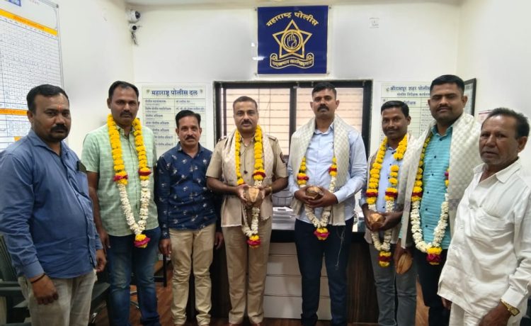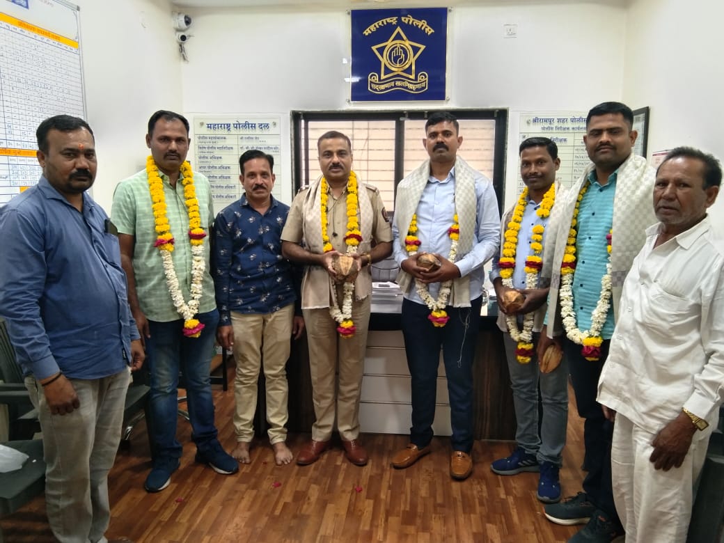 त्यानुसार श्रीरामपूर पोलीस निरीक्षक यांनी तत्काळ दखल घेऊन आपल्या वरिष्ठाच्या मार्गदर्शनाखाली पोलीस टीमने तपसाची सूत्रे फिरवत चोरी करणाऱ्या ०२ आरोपिंचा शोध घेऊन अटक करून पोलीसांनी ६२,५०० रुपये किंमतीचा मुद्देमाल ताब्यात घेतला. पोलिसांच्या या कारवाईच्या उत्कृष्ट कामगिरी बद्दल दुकानदार बन्सी बर्वे यांनी पोलीस निरिक्षक नितीन देशमुख साहेब, सहाय्य्क पोलीस निरीक्षक समाधान सोळके साहेब, सर्व पोलीस कर्मचारी तोडमल साहेब, कारकीले साहेब, बारसे साहेब, नरवडे साहेब ,लगड साहेब, अत्तार साहेब, खरात साहेब, पटारे साहेब यांचा पोलीस स्टेशन येथे जाऊन सर्वांचा सत्कार केला. यावेळी संतोष धुमाळ,देवेंद्र बोरा आदी उपस्थित होते.