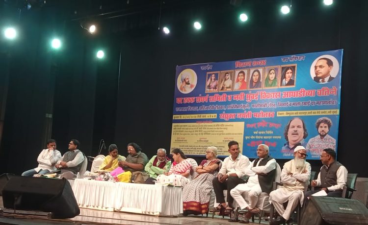प्रतिनिधी / जावेद शेख : घर हक्क संघर्ष समिती व नवी मुंबई विकास आघाडीच्या वतीने राज माता जिजाऊ,अहिल्यादेवी होळकर, सावित्रीबाई फुले,फातिमाबी शेख,माता भीमाई, माता रमाई या महामातांचा संयुक्त जयंती महोत्सव दिनांक २८ फरवरी २०२४ रोजी सायंकाळी ४.०० ते ७.०० वाजता विष्णुदास भावे नाट्यगृह वाशी येथे नवी मुंबई विकास आघाडीच्या वतीने आयोजित केला होता.या कार्यक्रमाला प्रमुख मार्गदर्शक म्हणून उल्काताई महाजन (सर्वहारा आंदोलन तथा भारत जोडो अभियान समन्वयक), शाहीर संभाजी भगत (विद्रोही कवी), कॉम्रेड सौ.भारती भोयर(विज कामगार व आयटक महिला नेत्या), राजा कांदळकर (संपादक लोकमुद्रा), कुमारी साम्या कोरडे (अध्यक्ष पुरोगामी विद्यार्थी संघटना), प्राचार्य बी.बी.पवार (पीपल एज्युकेशन सोसायटीचे),चंद्राची श्रीनिवासन (जनता दल नवी मुंबई विकास आघाडी घटक पक्ष व संघटना) यांनी मार्गदर्शन केले. सभेचे अध्यक्ष म्हणून हिरामण पगार (घर हक्क संघर्ष समिती संस्थापक अध्यक्ष) उपस्थित होते. तर स्वागत अध्यक्ष खाजामिया पटेल (महाराष्ट्र प्रदेश उपाध्यक्ष रिपब्लिकन सेना) उपस्थित होते.