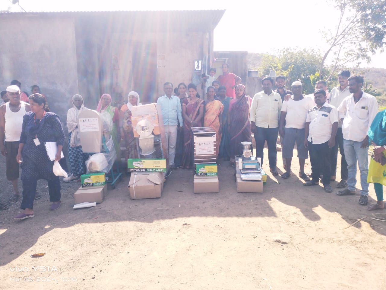 प्रतिनिधी / गंगासागर पोकळे : वनकुटे येथे खासदार सुजय दादा विखे पाटील यांच्या माध्यमातून धनसंपदा महिला बचत गट साहित्य वाटप करण्यात आले. दि.10 वनकुटे गावचे माजी उपसरपंच तथा विद्यमान सदस्य भास्कर शिंदे यांच्या संकल्पनेतून वनकुटे येथील धनसंपदा महिला बचत गटासाठी पाच लाख रुपयांची साहित्य वाटप त्यामध्ये स्टॉल टपरी, पिठाची गीरणी, शेवई मशीन ,गहू चिक काढणे मशीन,मसाला तयार करणे मशीन,वजन काटा व इतर विविध वस्तूंचे वाटप भास्करराव शिंदे यांच्या शुभ हस्ते वाटप करण्यात आले.