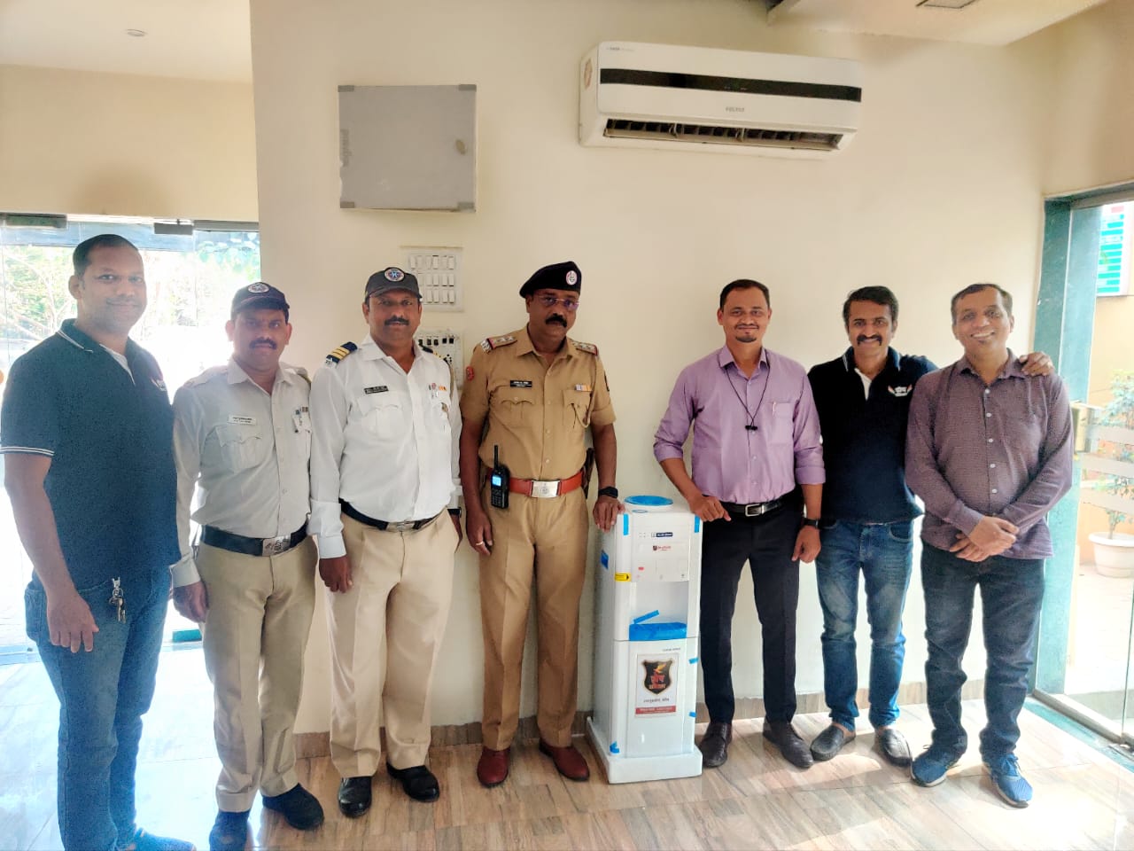 विशेष प्रतिनिधी / किशोर खामगळ : झेप प्रतिष्ठान तर्फे आज नौपाडा ठाणे ट्रॅफिक कंट्रोल रूम, तीन हात नाका येथे पिण्याच्या पाण्याचे वॉटर कूलर भेट म्हणून देण्यात आले. उन्हाळ्यात पोलीस बांधवांना थंड पाण्याची सोय व्हावी आणि स्वच्छ पाणी मिळावे या हेतूने ही भेट देण्यात आली.याप्रसंगी ट्रॅफिकचे पोलीस मोहिते सर, अतुल सर, आव्हाड सर आणि इतर पोलीस बांधव उपस्थित होते.