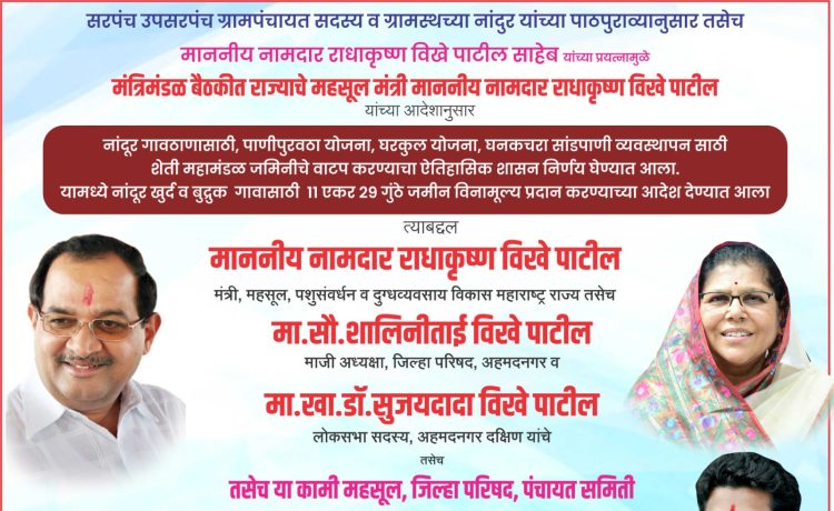 राहाता तालुक्यातील नांदूर गावास गावठाणासाठी ११ एकर जमिनिसह कोट्यावधींचा विकास निधी मंजूर