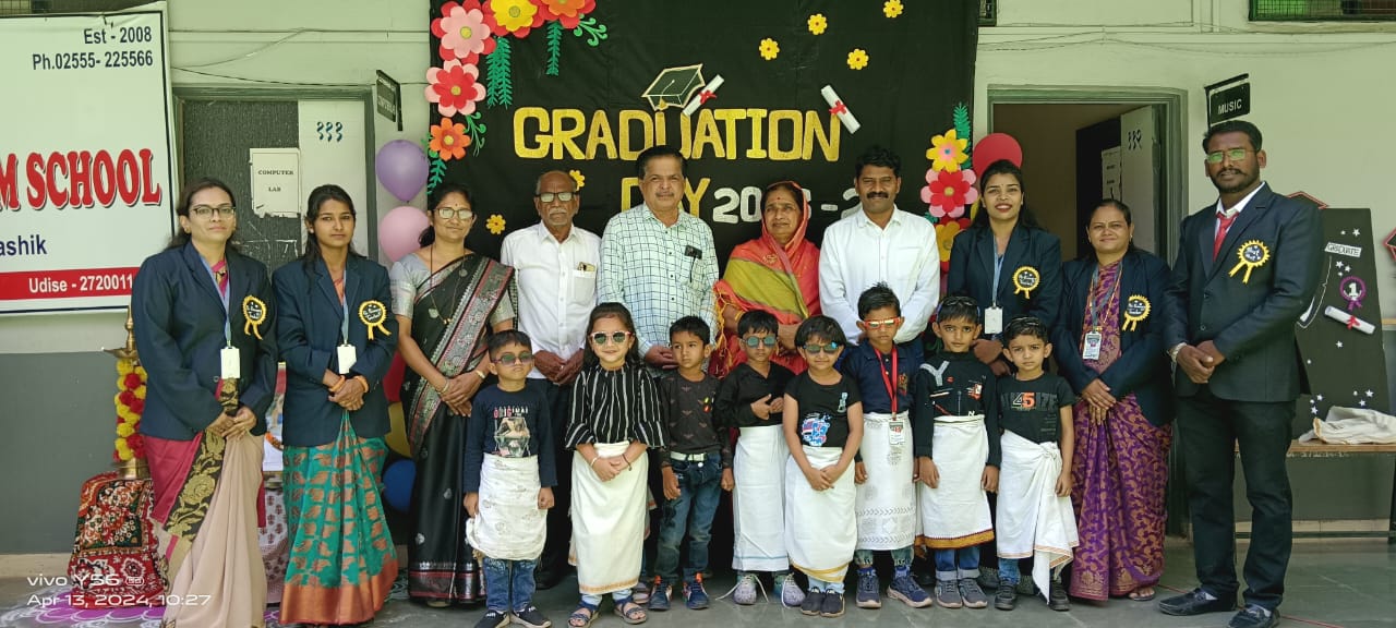 या कार्यक्रमाचे नियोजन व सजावट श्रीम.माधुरी अहिरे, पुनम विरगावकर, निकिता भामरे, वैष्णवी देवरे यांनी अतिशय उत्कृष्ट असे केले होते. विद्यार्थी ग्रॅज्युएशन ड्रेसमध्ये अतिशय सुंदर असे दिसत होते. त्यात त्यांच्या डोक्यावरील टोपी, कोट हातातील प्रमाणपत्र सगळ्यांचे लक्ष वेधून घेत होते. या कार्यक्रमामुळे चिमुकल्यांच्या चेहऱ्यावरील आनंद खरोखरच बघण्यासारखा होता.आजच्या या कार्यक्रमाचे सूत्रसंचालन शाळेतील ज्येष्ठ शिक्षक श्री. अविनाश वाघ यांनी केले.