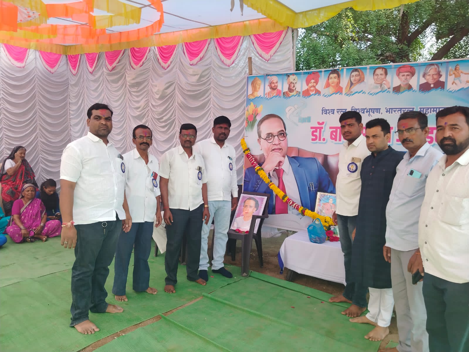 याप्रसंगी संदिप देसाई, शब्बीर पटेल, शरद देसाई, अनिल वावरे, हाजी महंमद पटेल , किशोर त्रिभुवन , किशोर देसाई, सुनिल अहिरे, राजेंद्र देसाई, कुंडलिक त्रिभुवन , बाळू गायकवाड, शरद माळी, दिपक गायकवाड, विलास भवार पत्रकार संदीप जगताप आदीसह ग्रामस्थ उपस्थित होते.दरम्यान सकाळी सर्व महत्पुरुषांना अभिवादन करण्यात आले. त्यानंतर ६ वा भोजनाचा कार्यक्रम पार पडला. दि. १६ रोजी फटाक्याच्या आतषबाजीत भव्य मिरवणूक काढण्यात येणार आहे.