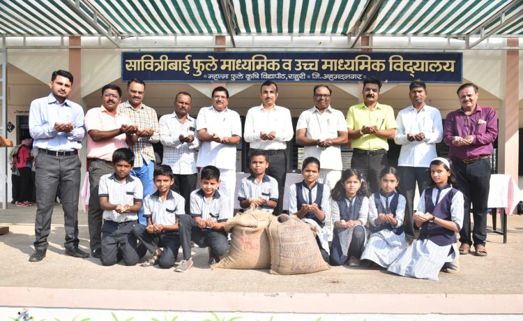राहुरी प्रतिनिधी / जावेद शेख : सावित्रीबाई फुले माध्यमिक व उच्च माध्यमिक विद्यालय महात्मा फुले कृषी विद्यापीठ राहुरी येथील राष्ट्रीय हरित सेनेच्या विद्यार्थ्यांनी पक्षांसाठी दिले एक क्विंटल धान्य, मुठभर धान्य पक्षांसाठी या उपक्रमा अंतर्गत हरित सेनेतर्फे विद्यार्थ्यांना केलेल्या आवाहनाला प्रतिसाद देत विद्यार्थ्यांनी आपल्या घरून बाजरी, गहू, ज्वारी इत्यादी प्रकारचे मुठभर धान्य विद्यालयात जमा केले.थेंबे थेंबे तळे साचे या म्हणीप्रमाणे एक क्विंटल धान्य पक्षांसाठी जमा झाले. वातावरणातील बदलामुळे, यावर्षी कमी पर्जन्यमानामुळे रानावनात पक्षांना खाद्य कमी प्रमाणात उपलब्ध आहे.