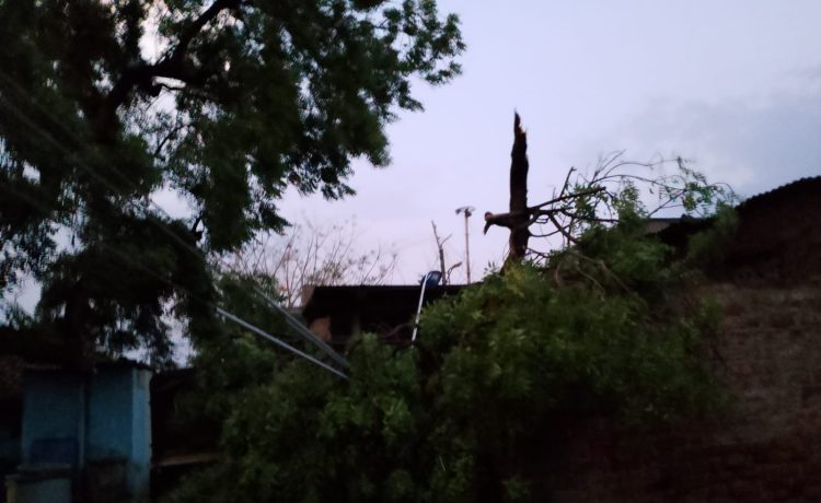 बिलोली प्रतिनिधी / साईनाथ गुडमलवार (कासराळीकर ) : वातावरणातील बदल व तीव्र उन्हानंतर शुक्रवारी सायंकाळी सहा च्या सुमारास बिलोली तालुक्यासह परिसरात मेघगर्जनेसह वादळी पाऊस झाला त्यामुळे तालुक्यातील कासराळी,भोसी, बेळकोणी बु, कोल्हेबोरगाव, तळणी, पाचपिंपळी, रामपुर,सगरोळीसह इतर गावांमध्ये अनेक घरावरील पत्रे उडाली वादळी वाऱ्यामुळे वीज वितरण चे तारे तुटले इलेक्ट्रिक पोल जमिनीतून उकडून पडणे आहेत. झाडे पडून सिमेंटचे पोल जमिनीवर कोसळे आहेत तांत्रिक बिघाड झाली आहे.