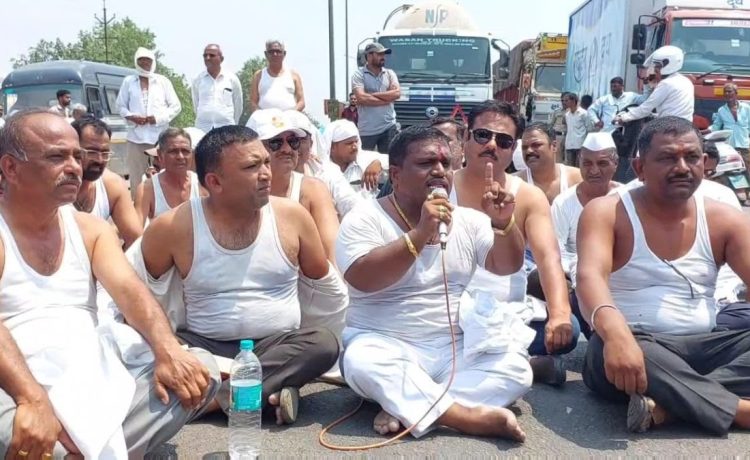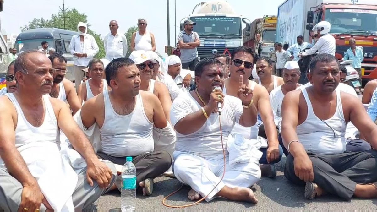 जिल्ह्यावर तीव्र पाणी टंचाईचे संकट असून पिके करपू लागली आहेत. यामुळे राहुरी तालुक्यातील शेतकरी आक्रमक झाले आहेत. दरम्यान मुळा धरणाच्या डाव्या कालव्यातून शेती पिकांसाठी पाणी सोडावे. या मागणीसाठी शेतकऱ्यांनी नगर- मनमाड महामार्गावर अर्धनग्न होत रास्ता रोको आंदोलन केले. रास्ता रोको आंदोलनामुळे रस्त्याच्या दुतर्फा वाहनांच्या लांबच लांब रांगा लागल्याने मोठी वाहतूक कोंडी झाली होती.